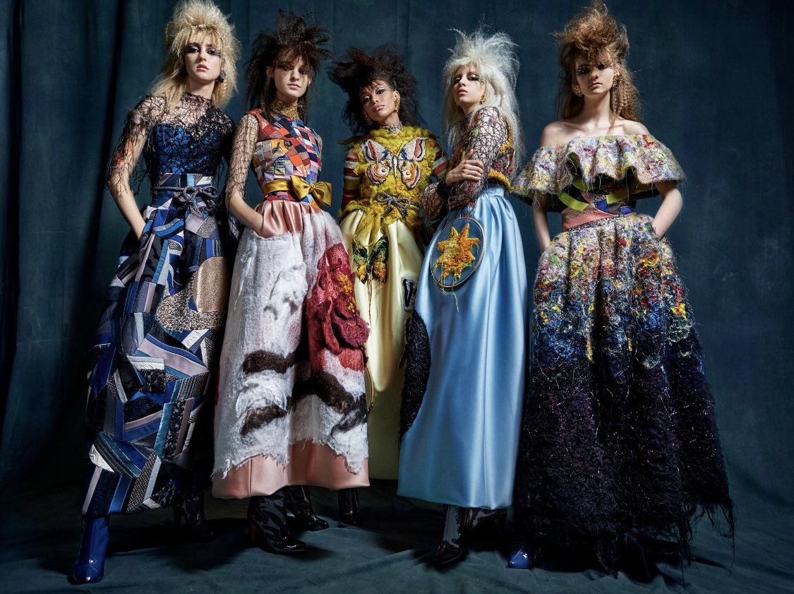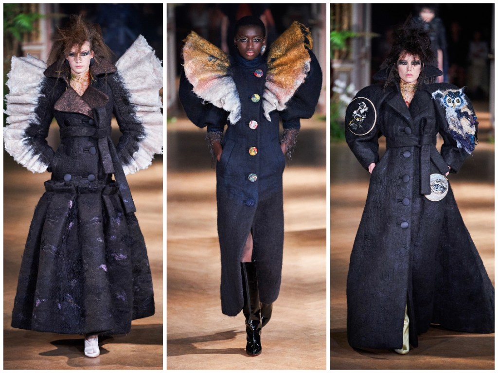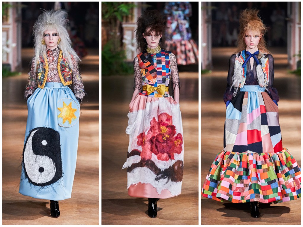 In collaboration (for the first time—ever) with textile designer, and artist in her own right, Claudy Jongstra, the team produced mystical pieces converting vintage and upcycled materials, along with remarkably rare, Renaissance-esque dyeing techniques that fashioned an art-filled-fantastical fashion story… of totally witch-like and whimsical quantities, complete with imaginative scenic prints and embroideries!